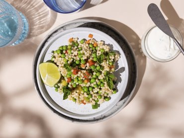 Perlcouscous-Salat mit Erbsen und Minzjoghurt (von Johann Lafer)
